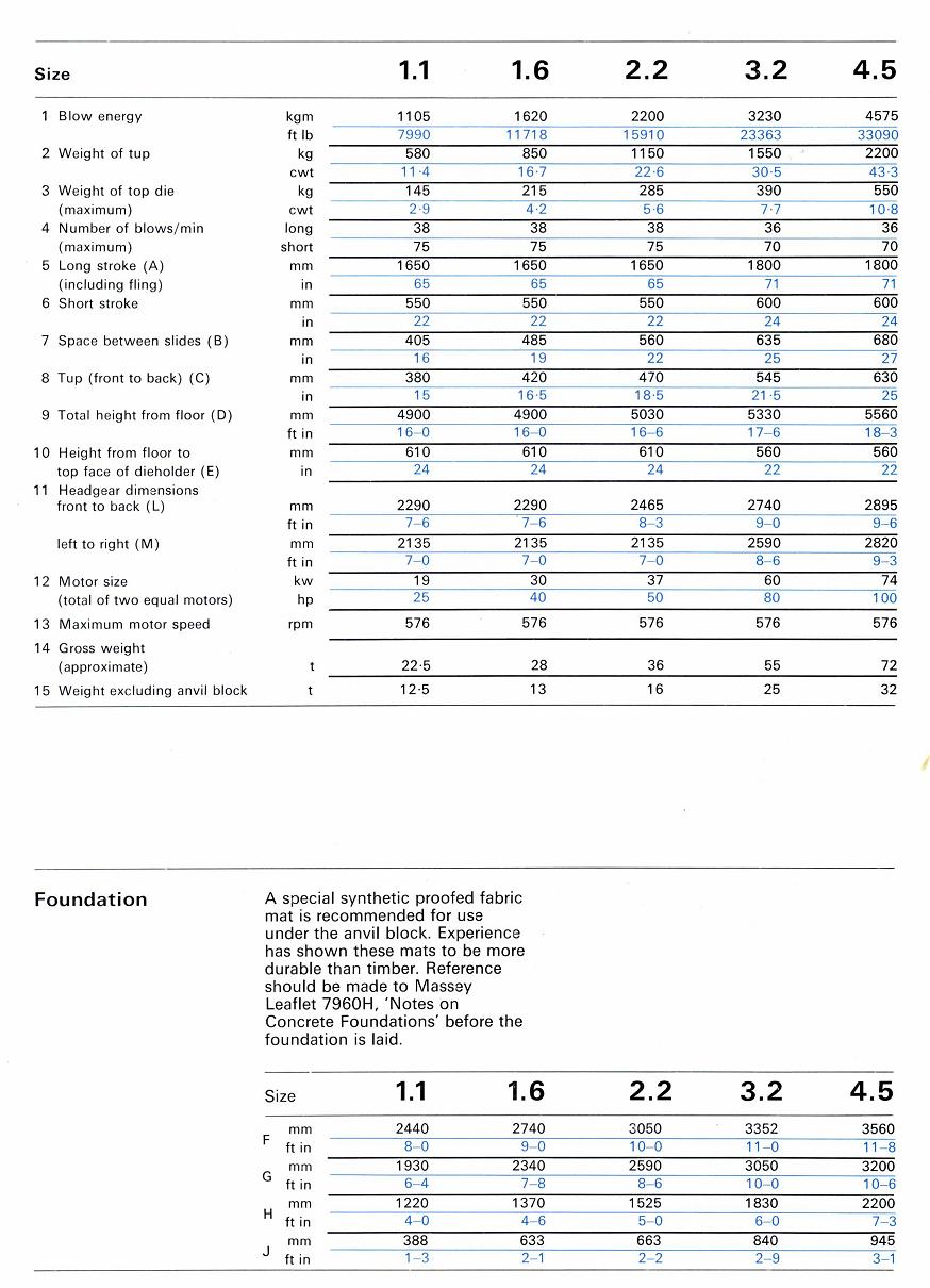 'MSC' FRICTION DROP HAMMER SPECIFICATION SHEETS |
