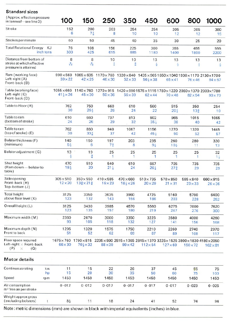 'WIDE RAM' TRIMMING PRESS SPECIFICATION SHEETS |