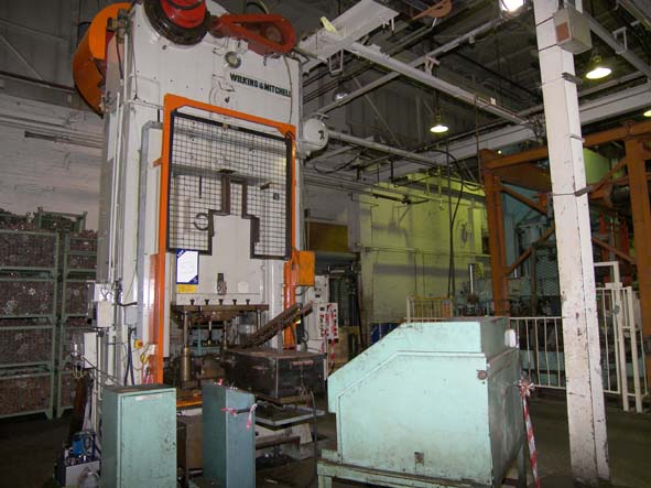 200 TON CAPACITY WILKINS & MITCHELL TRIMMING PRESS WITH THROUGH FEED EQUIPMENT AND PARTS LOADER |
